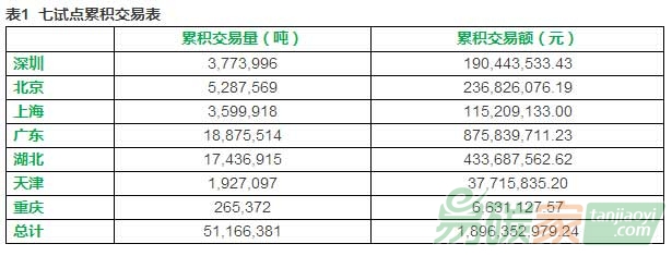 北京碳價(jià)大幅上漲,交易量繼續(xù)下降;湖北交易量有所上漲;天津、上海本周無配額交易;七試點(diǎn)碳市累積成交數(shù)值(交易量、交易額)請參考下表1。