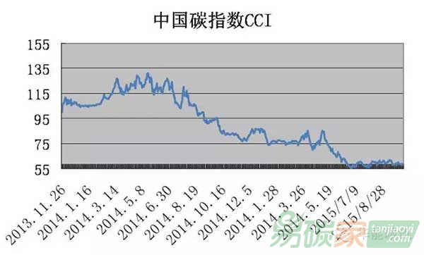 中國碳指數(shù)CCI近期跌破60,上周五收于57.48點。