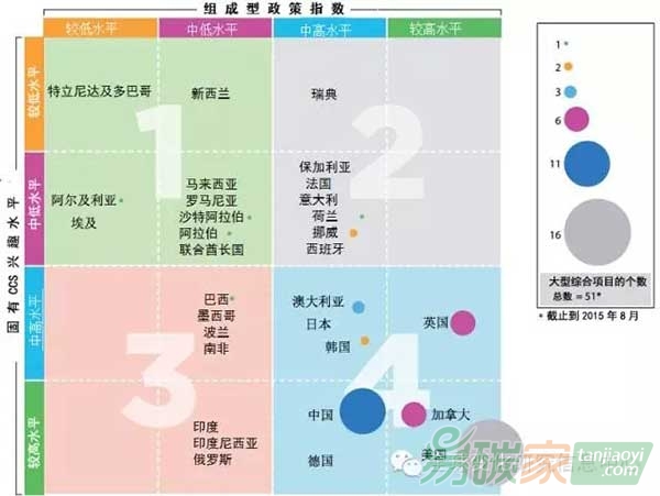 政策指標(CCS-PI))數據,比較和報告各國對推動國內CCS行動的國家政策支持水平。2015年CCS-PI的主要結果如下: