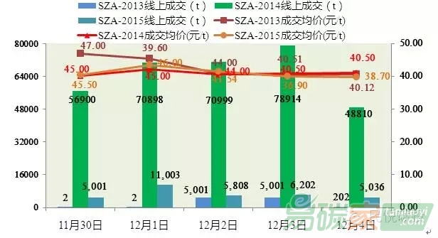 上周深圳碳市較活躍,三種配額每日均有成交量。SZA2013、SZA2014、SZA2015成交量分別為10,208t、326,521t、33,060t。SZA2014在周二到周四成交量均達(dá)到70,000t以上。碳價(jià)方面,SZA2013、 SZA2014、SZA2015成交價(jià)格在分別在40.12元/噸~47.00元/噸、40.50元/噸~45.00元/噸、36.90元/噸~46.00元/噸范圍內(nèi)波動(dòng)。