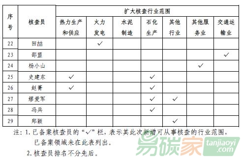 北京市已備案核查員擴(kuò)大核查行業(yè)范圍匯總表