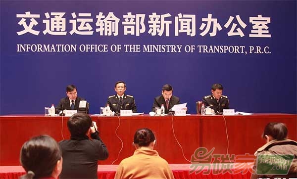 交通運輸部海事局巡視員李青平(左二)在介紹情況。當日,據(jù)交通運輸部在