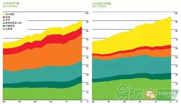 (石油分區(qū)域產(chǎn)量和消費(fèi)量變化趨勢(shì))