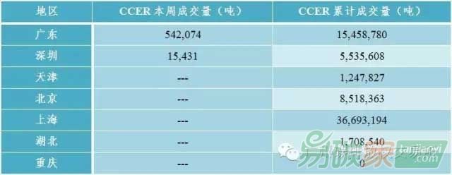 ccer成交1.54萬噸(含大宗交易1.24萬噸)。湖北碳市場上周共成交配額13.12萬噸,成交均價(jià)為13.76元/噸,較前一周下跌0.79%;湖北現(xiàn)貨遠(yuǎn)期交易6000噸,成交金額12.17萬元,成交均價(jià)較前一周下跌13.32%。重慶碳市場上周成交配額2.10萬噸,成交均價(jià)3.32元/噸,成交均價(jià)較前一周下跌58.50%。天津碳市場和上海碳市場上周均無成交。