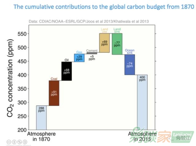 大氣中二氧化碳的濃度,1870年288ppm,2015年時,已經(jīng)達到400ppm.