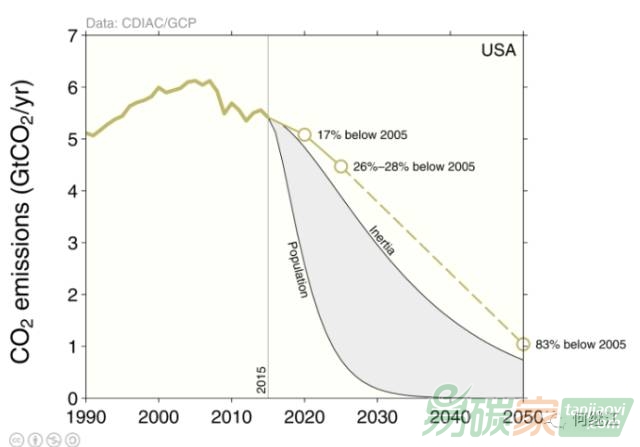 美國計劃2020年比2005年減排17%,2025年減排26-28%。