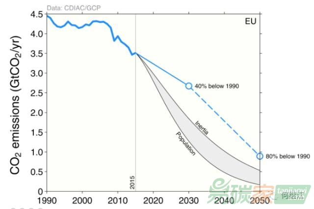 歐盟2030年比1990年減排40%,2050年將減排80%。