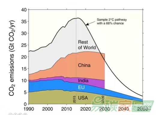 2度目標(biāo)下,2030年,美國、歐盟、中國和印度四大經(jīng)濟體就把全世界的