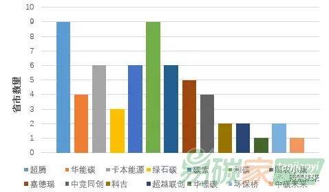 我們從核查機構(gòu)名單中發(fā)現(xiàn)了眾多從事碳配額和CCER咨詢和買賣的碳資產(chǎn)公司或碳咨詢公司。有的公司居然拿到了9個省市的核查機構(gòu)資格,根據(jù)關(guān)鍵詞,比較活躍的公司列在下面。