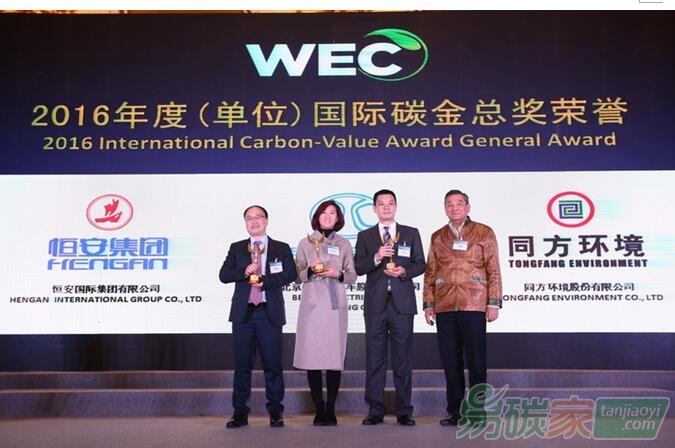 2017年1月13日,由國(guó)際生態(tài)經(jīng)濟(jì)協(xié)會(huì)(IEEPA)主辦,世界環(huán)保(經(jīng)濟(jì)與環(huán)境)大會(huì)組委會(huì)組織承辦的“2016綠色低碳發(fā)展變革力領(lǐng)導(dǎo)者年會(huì)”在京召開(kāi);國(guó)家有關(guān)部委領(lǐng)導(dǎo)、國(guó)務(wù)院參事、中國(guó)工程院院士、清華大學(xué)、北京大學(xué)等專家學(xué)者和來(lái)自21個(gè)國(guó)家駐華使館官員和聯(lián)合國(guó)人居署、世界銀行等國(guó)際組織的高級(jí)官員,近百名國(guó)內(nèi)外企業(yè)家共同出席會(huì)議;在本屆年會(huì)上共有3位個(gè)人和22家單位獲得第六屆國(guó)際碳金獎(jiǎng)的各類別殊榮。