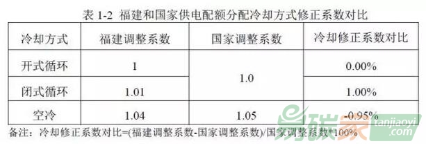 對(duì)比可以發(fā)現(xiàn),福建冷卻方式修正系數(shù)和國(guó)家的幾乎相同。