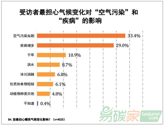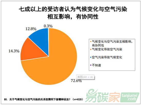 “空氣污染”成了本次調(diào)研的一大焦點。受訪者最擔心氣候變化帶來的空氣污染影響,七成以上的受訪者認為氣候變化與空氣污染有協(xié)同性。