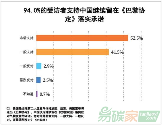 北京發(fā)布《2017年中國公眾氣候變化與氣候傳播認知狀況調(diào)研報告》。數(shù)據(jù)顯示,94%受訪者支持中國落實《巴黎協(xié)定》,96.8%的受訪者支持中國政府開展應(yīng)對氣候變化國際合作。