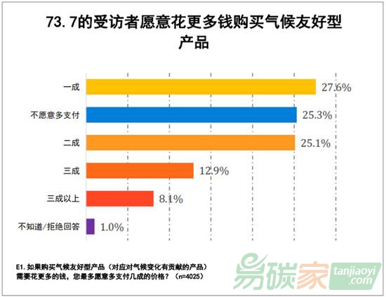 而在行動上,超七成的受訪者愿意花更多錢購買氣候友好型產(chǎn)品,近三分之一的受訪者愿意為自己產(chǎn)生的