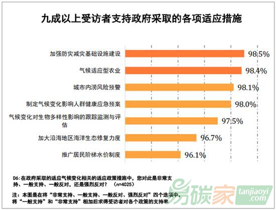 中國公眾也表現(xiàn)出了認知和參與應(yīng)對氣候變化的明確意愿。調(diào)研的最高數(shù)值出現(xiàn)在校園教育:98.7%的受訪者支持在學校開展氣候變化教育。