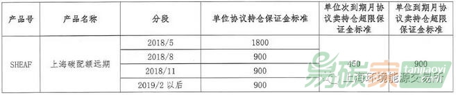 接上海清算所通知,2018年4月28日起,上海清算所將對(duì)上海碳配額遠(yuǎn)期產(chǎn)品保證金標(biāo)準(zhǔn)進(jìn)行調(diào)整,調(diào)整后的分段保證金標(biāo)準(zhǔn)如下: