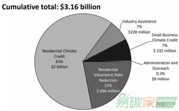 加州碳市場開發(fā)的這項分配方法通過具體而高效的方式將配額收入返還給消費者,即創(chuàng)造了經(jīng)濟效益,也保護了消費者的利益?;旧?,在這一分配方式下,碳價格信號仍然有效,碳的價格也在上升的電價中得到反映。同時,電力消費者因為可以收到定期的現(xiàn)金返還(“氣候積分”,即每個客戶的固定支付不會隨電力消費量變化而變化),所以其利益不受碳價影響。