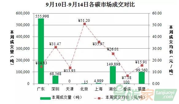 廣東碳市場上周成交配額55.60萬噸,成交均價為14.83元/噸,較前一周上漲13.90%;