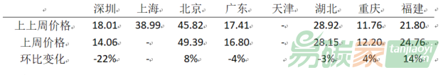 線上交易周成交均價環(huán)比變化