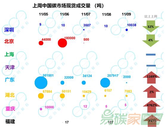 11月5日~11月9日,上海和深圳市場CCER分別成交1萬噸,北京市場CCER成交20萬噸,