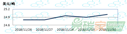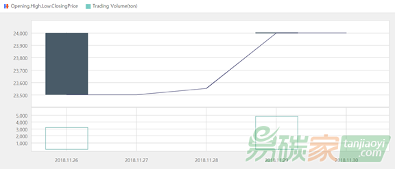 2018年11月26日至2018年12月02日,韓國碳市場價格在23500-24000韓元/噸之間波動(約20.78-21.43美元/噸)。