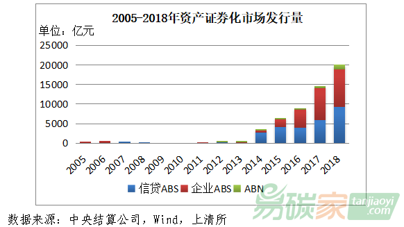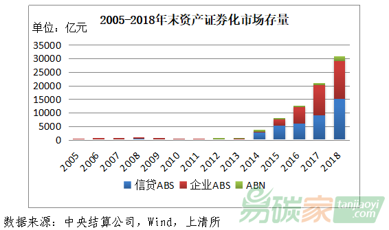 2018年我國資產(chǎn)證券化市場規(guī)模繼續(xù)保持快速增長態(tài)勢,全年共發(fā)行資產(chǎn)證券化產(chǎn)品2.01萬億元,同比增長36%;年末市場存量為3.09萬億元,同比增長47%。