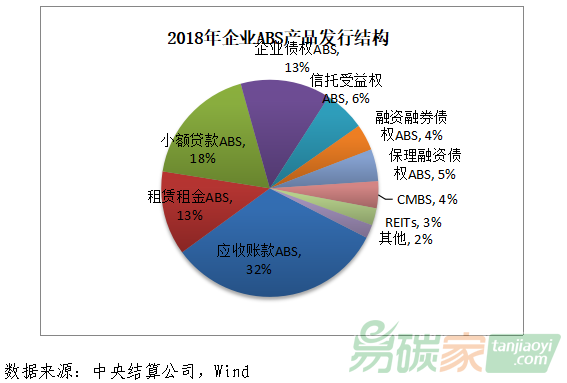 企業(yè)ABS產(chǎn)品中,應(yīng)收賬款、小額貸款、企業(yè)債權(quán)和租賃租金類ABS產(chǎn)品的發(fā)行規(guī)模較大,分別為3078.18億元、1723.12億元、1272.03億元和1187.94億元,占企業(yè)ABS發(fā)行量的32%、18%、13%和13%。信托受益權(quán)ABS、保理融資債權(quán)ABS、CMBS(商業(yè)地產(chǎn)抵押貸款支持證券)、融資融券債權(quán)ABS和REITs分別發(fā)行585.18億元、452.68億元、380.11億元、371億元和241.44億元,占企業(yè)ABS發(fā)行量的6%、5%、4%、4%和3%,其中保理融資債權(quán)、融資融券債權(quán)和應(yīng)收賬款A(yù)BS的發(fā)行量同比分別大增269%、185%和108%。此外,由基礎(chǔ)設(shè)施收費、門票收入、委托貸款和PPP項目ABS組成的其他類產(chǎn)品合計發(fā)行189.01億元,占2%。