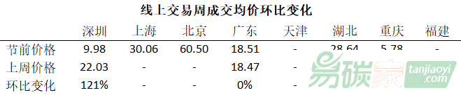 福建從今年年初起尚未出現(xiàn)現(xiàn)貨交易的基礎上,春節(jié)后,各區(qū)域碳市場交易普遍呈縮緊態(tài)勢,上海、