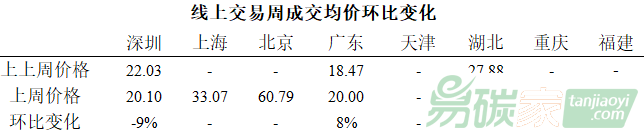 四川市場繼續(xù)保持活躍,累計成交2.7萬噸;上周廣東、北京、深圳、湖北、天津、重慶CCER市場無成交。