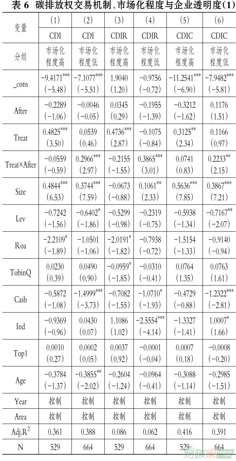 (二)碳排放權(quán)交易機(jī)制、市場(chǎng)化程度與企業(yè)碳透明度