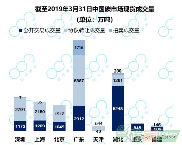 截至2019年3月31日,9個備案的交易所共成交CCER 1.76億噸,其中上海成交7833.2萬噸,占比約44%。3月,上海、廣東、北京、深圳、
