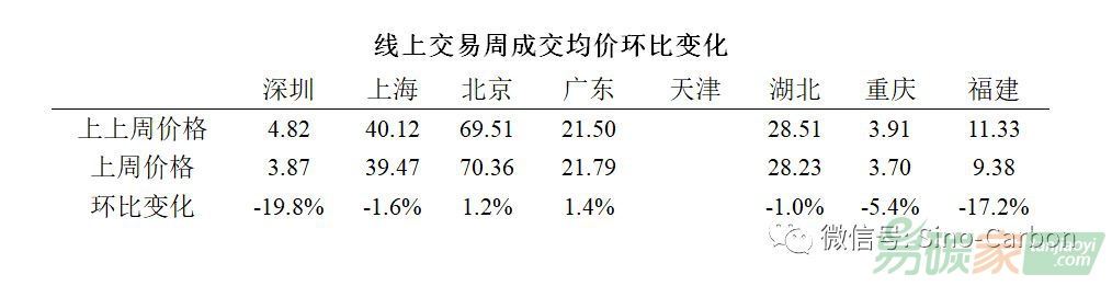 福建市場價格降幅相對明顯,較前一周下降了近20%,其中深圳市場自春節(jié)后價格總體呈下滑態(tài)勢,上周平均成交價格跌至4元/噸;福建市場自3月上旬恢復(fù)成交以來價格持續(xù)走低,上周平均成交價格跌破10元/噸。上周,其他試點地區(qū)市場價格表現(xiàn)穩(wěn)定,上海、北京、廣東(21.79元/噸)、湖北(28.23元/噸)、重慶(3.70元/噸)市場的平均價格與前一周基本持平。上周天津配額市場無成交。