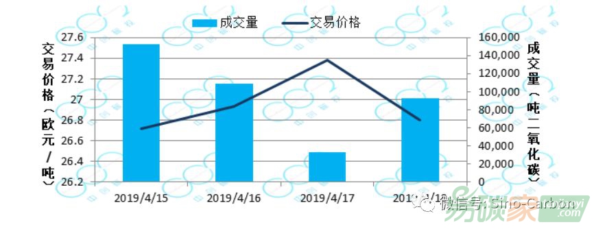 韓國碳市場2019年04月15日至2019年04月21日,韓國碳市場價格在27600-27900韓元/噸間波動(約24.26-24.52美元/噸)。