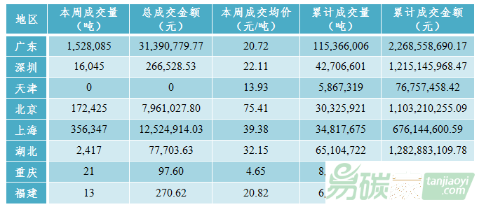 碳市場活躍度有所上升,共成交配額207.54萬噸,較上周上漲61.35%,總成交金額為5222.13萬元,較上周上漲80.16%。廣東碳市場本周成交配額152.81萬噸(含協(xié)議轉(zhuǎn)讓57.79萬噸),成交均價為20.72元/噸,較上周下跌6.83%;