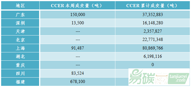 四川碳市場本周CCER成交8.35萬噸。天津碳市場本周未成交。