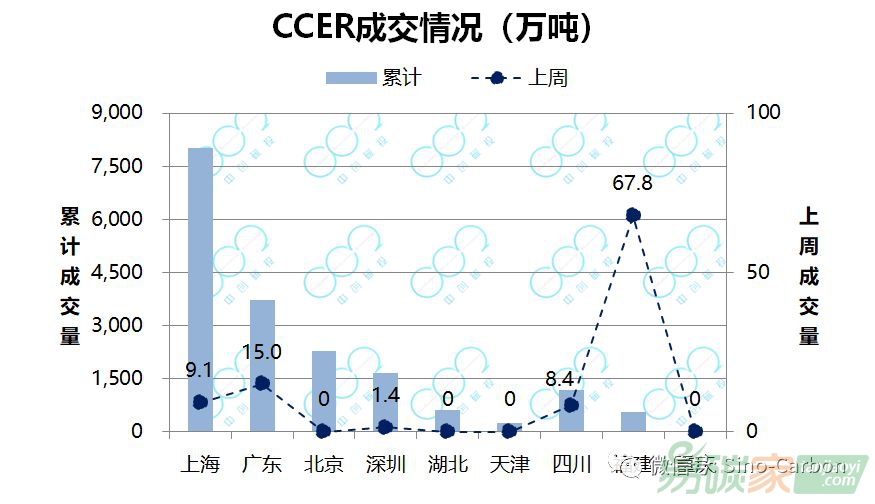 ccer市場:2019年5月6日-5月10日,福建CCER市場表現(xiàn)最為活躍,共計成交67.8萬噸;其次為廣東,成交15萬噸;上海成交9.1萬噸;