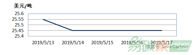 新西蘭碳市場(chǎng)2019年05月13日至2019年05月19日,新西蘭碳市場(chǎng)價(jià)格在25.45-25.55美元/噸之間波動(dòng)。