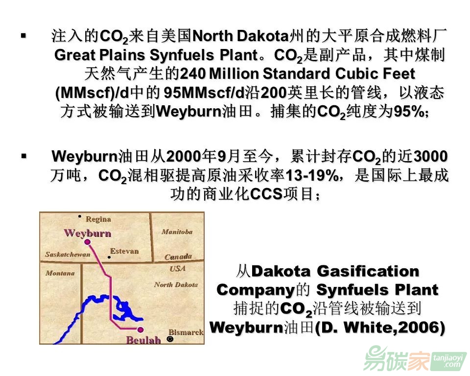 如圖是二氧化碳從美國North Dakota修建了340公里的管道運輸過來,運輸成本非常低,300公里運費一噸才10美元。二氧化碳捕集費用同樣為10美元一噸。