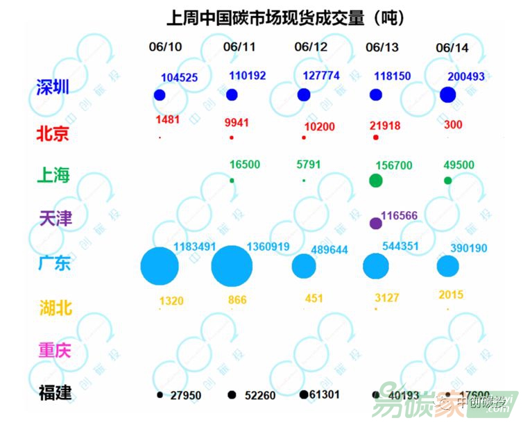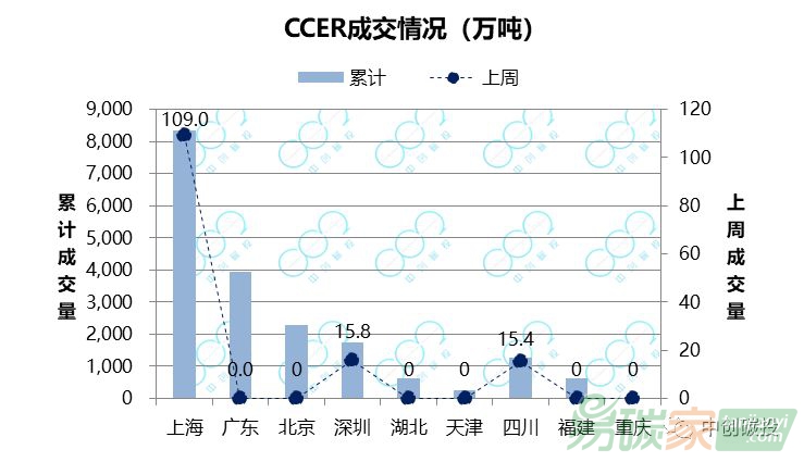 2019年6月10日-6月14日,各CCER市場中,上海表現(xiàn)最為活躍,共計(jì)成交109萬噸;