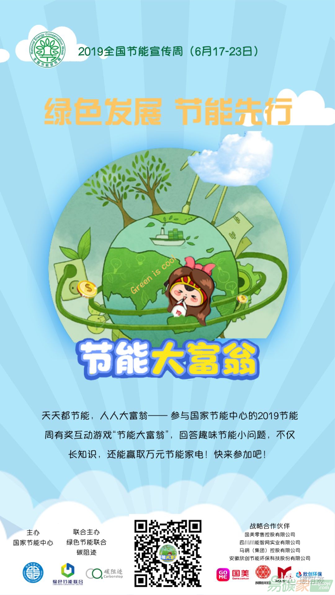 這周恰逢全國(guó)節(jié)能宣傳周,由國(guó)家節(jié)能中心、綠色節(jié)能聯(lián)合以及碳阻跡聯(lián)合主辦,碳阻跡出品,國(guó)美等企業(yè)贊助的節(jié)能周益智類游戲-節(jié)能大富翁正式上線了,歡迎你的參與。
