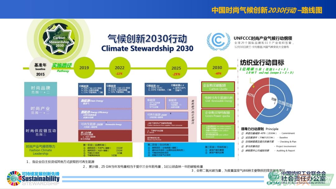碳減排30%,并形成品牌協(xié)同機制共同改善中國時尚供應(yīng)鏈的減排任務(wù)中國政府2030碳減排65%的承諾,及‘青山綠水’戰(zhàn)略中國紡織工業(yè)聯(lián)合會2017年啟動
