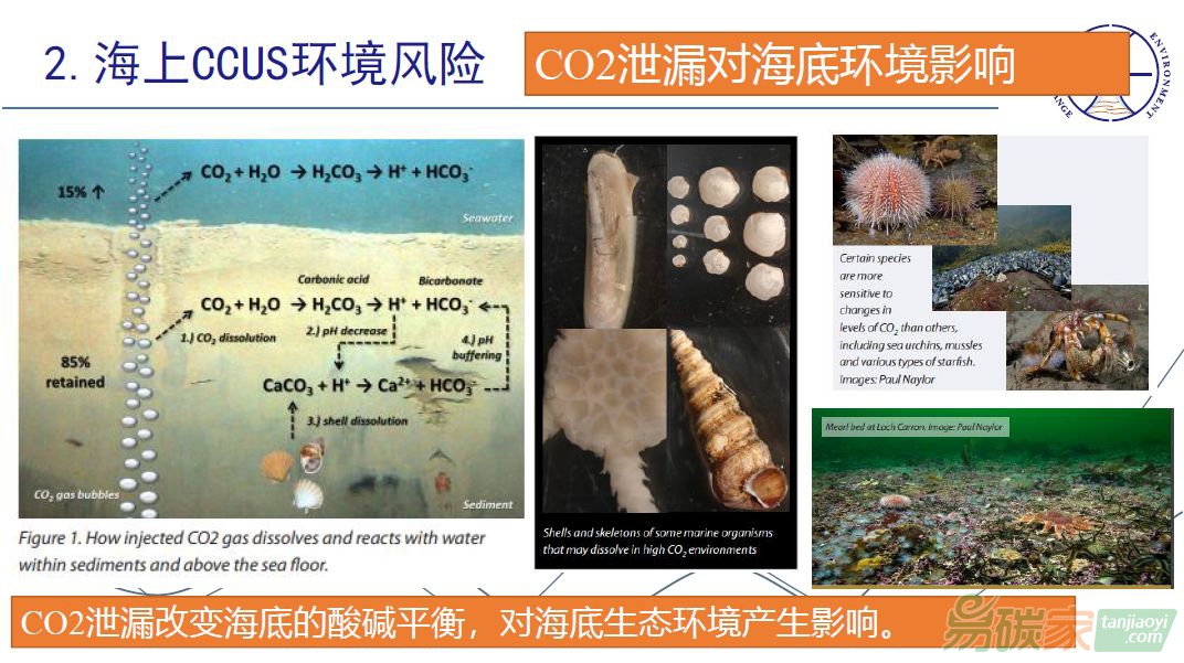 海底地質(zhì)封存泄露方式與陸上類似,也是通過井筒、斷層等通道上來。但海底和陸上不一樣,海底會(huì)溶解一部分,有可能保存到海底,或者保存到海底淺層沉積物里。