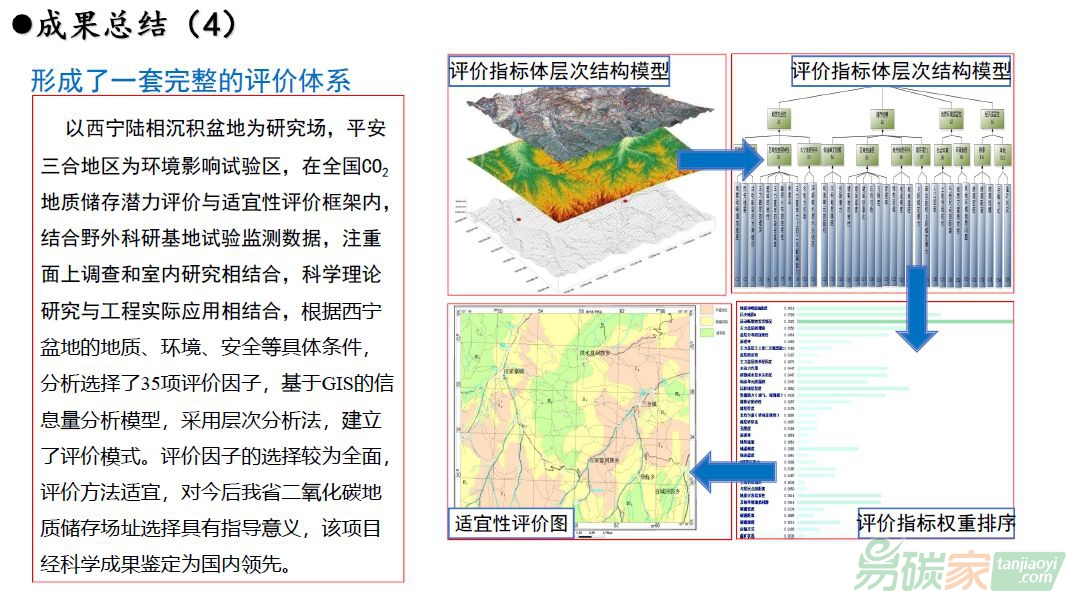 通過全國指標(biāo)體系的建立,基本上達(dá)成了以地質(zhì)安全性、儲存規(guī)模、地質(zhì)環(huán)境適宜性、經(jīng)濟(jì)適宜性四大指標(biāo)體系。第三層、第四層子準(zhǔn)則層和方案層,雖然指南中已經(jīng)給出了相應(yīng)的指標(biāo)和權(quán)重因子,但是我們在評價過程中仍然要切合各個地方實(shí)際情況,選取最能體現(xiàn)當(dāng)?shù)氐刭|(zhì)環(huán)境等要素的標(biāo)準(zhǔn),確定閾值等。