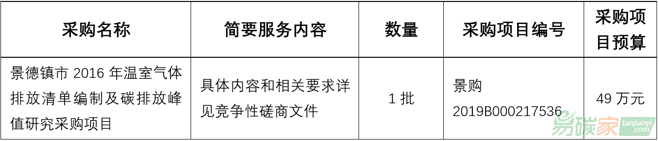 碳排放峰值研究服務(wù)采購項目(項目編號:JXTCJDZ2019180075)競爭性磋商采購公告