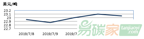 新西蘭碳市場(chǎng)2019年07月08日至2019年07月14日,新西蘭碳市場(chǎng)價(jià)格在22.87-23.10美元/噸之間波動(dòng)。