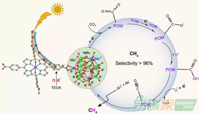 在最新發(fā)表于《國家科學(xué)評論》(National Science Review,NSR)的文章中,南京師范大學(xué)蘭亞乾教授課題組構(gòu)建了多酸基金屬配位骨架(POMCF)化合物,其在光催化CO2還原系統(tǒng)中對CH4的生成具有高選擇性(>96%)。