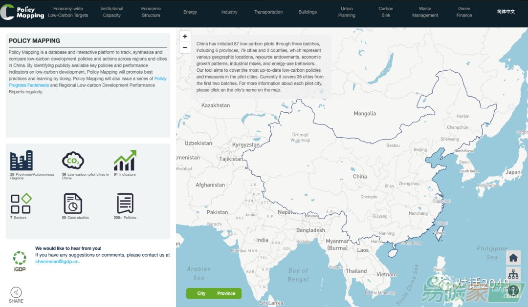 由綠色創(chuàng)新發(fā)展中心(iGDP)開發(fā)的低碳政策庫是跟蹤、整合國家以及地區(qū)綠色低碳政策與行動的信息平臺,其特點是以省市政策為主,對地區(qū)宏觀層面以及多行業(yè)、多部門的政策進行收集和整理,能夠一站式提供企業(yè)所在城市的綠色低碳政策。目前該數(shù)據(jù)庫已經(jīng)整理并呈現(xiàn)了36個低碳試點地區(qū)以及6個試點省的綠色低碳政策,涵蓋經(jīng)濟結(jié)構(gòu)調(diào)整、能源、產(chǎn)業(yè)、交通、建筑、城市規(guī)劃、固體廢棄物管理以及綠色金融等11個維度的政策信息。我們正在對低碳政策庫所覆蓋的地區(qū)、政策類型以及行業(yè)進行擴充,希望能為金融機構(gòu)的環(huán)境氣候風險量化分析提供更多支持。