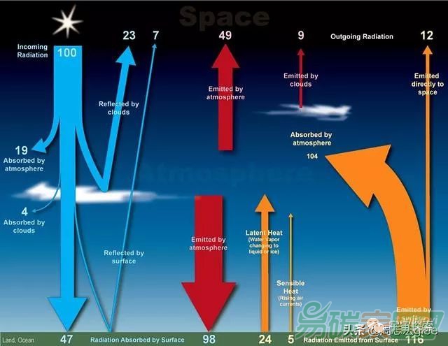 地球的熱能傳遞簡(jiǎn)圖學(xué)過(guò)物理的朋友應(yīng)該能回憶起熱傳遞的三種方式:輻射、對(duì)流、傳導(dǎo)。太陽(yáng)通過(guò)陽(yáng)光輻射方式將能量輸送到地球;其中一部分能量直接輻射到地面,另一部分用來(lái)加熱地球的大氣,還有一些被反射到太空;太陽(yáng)的熱能在地面會(huì)發(fā)生熱傳導(dǎo),大氣的導(dǎo)熱性能很差,它是流動(dòng)的,所以大氣會(huì)發(fā)生熱對(duì)流,它使我們感到有風(fēng)。同樣,地面也同時(shí)向外輻射熱能,一部分熱能用于加熱空氣,推動(dòng)大氣對(duì)流,一部分在大氣與地面之間循環(huán)。最終,地面的熱能被帶到高空,重新輻射到太空中去。