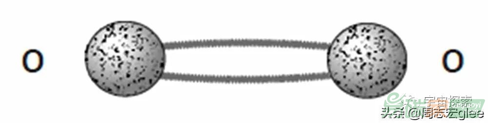 氮?dú)夥肿拥娜I連接氧氣分子由兩個(gè)通過(guò)強(qiáng)(短)雙鍵連接的氧原子(O)組成:
