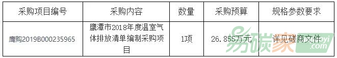 江西經(jīng)緯建設(shè)項目管理有限公司受鷹潭市生態(tài)環(huán)境局委托,對鷹潭市2018年度溫室氣體排放清單編制采購項目(項目編號:JXJW-2019-YT003)進行競爭性磋商采購,歡迎合格的供應(yīng)商前來參加。